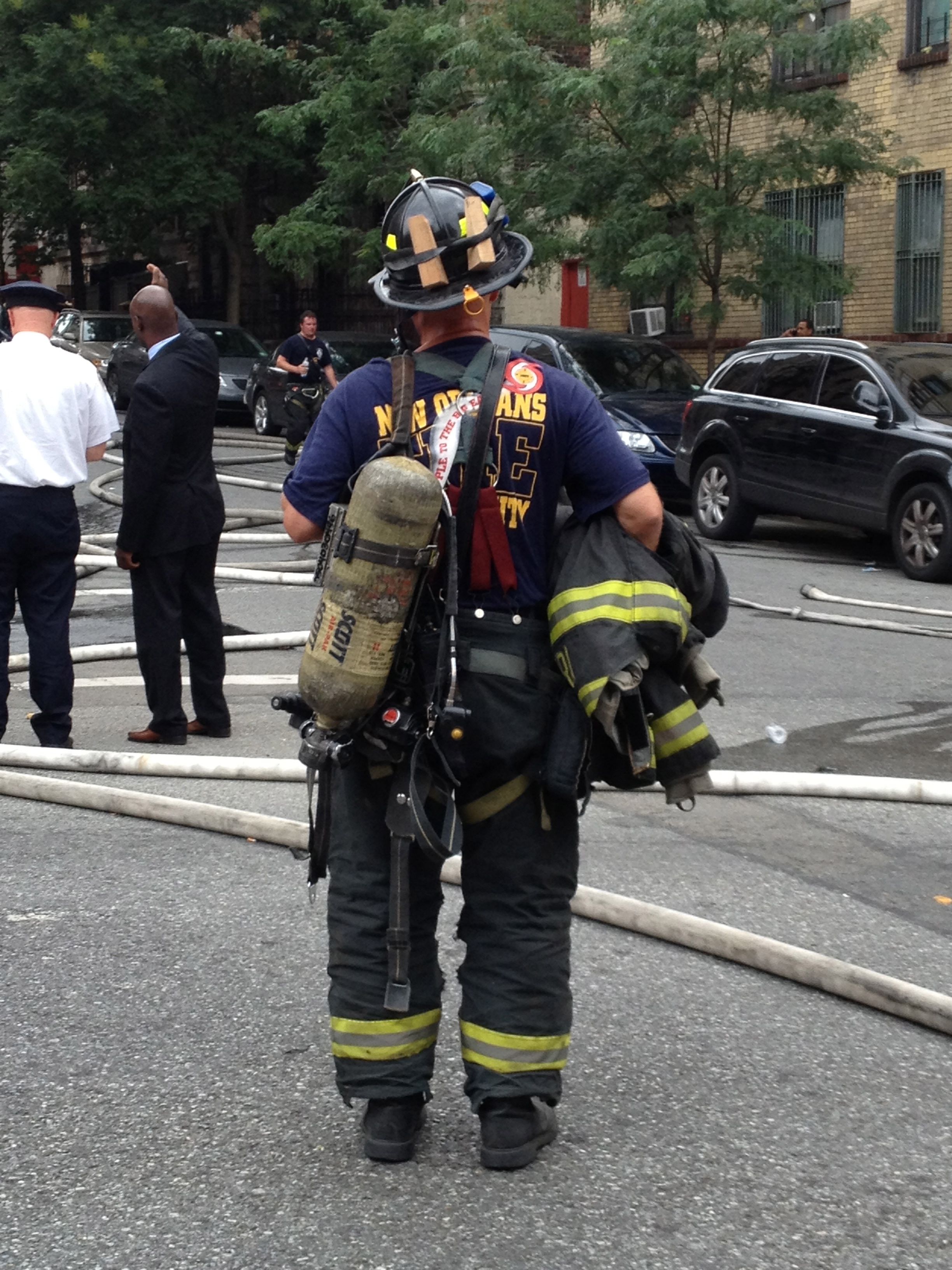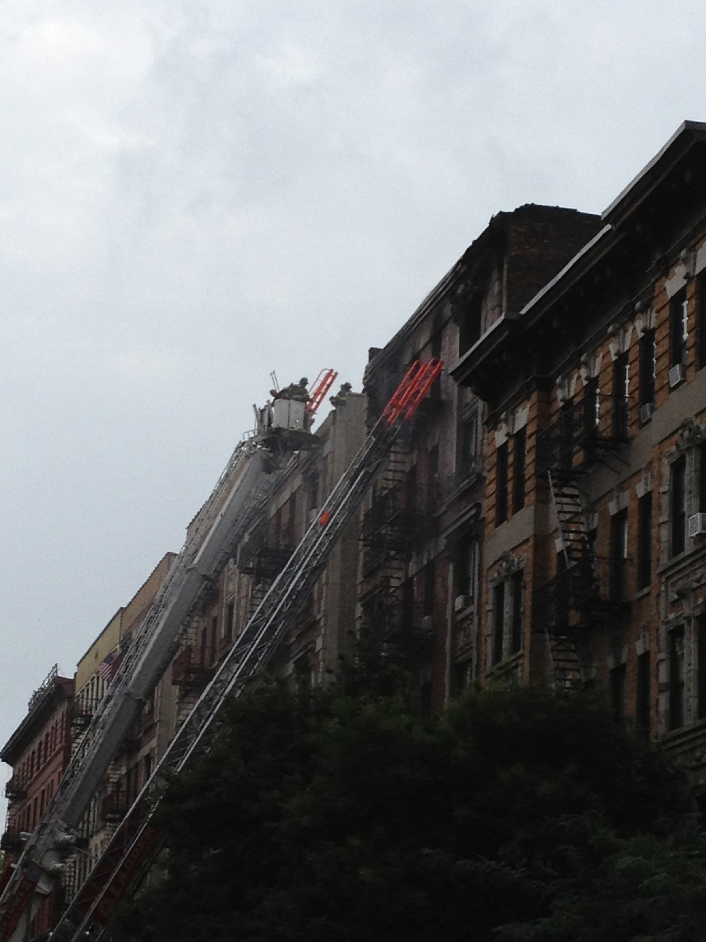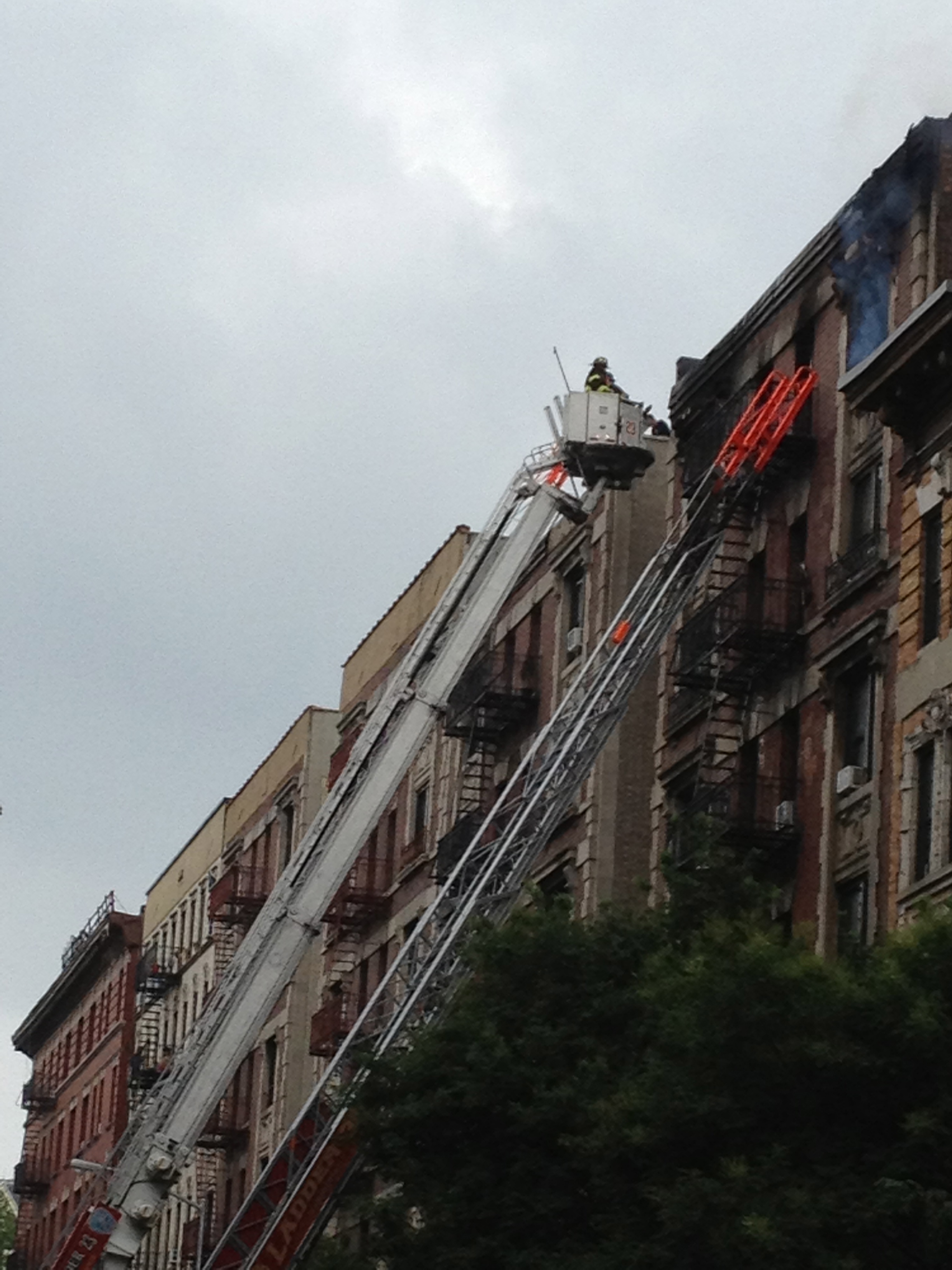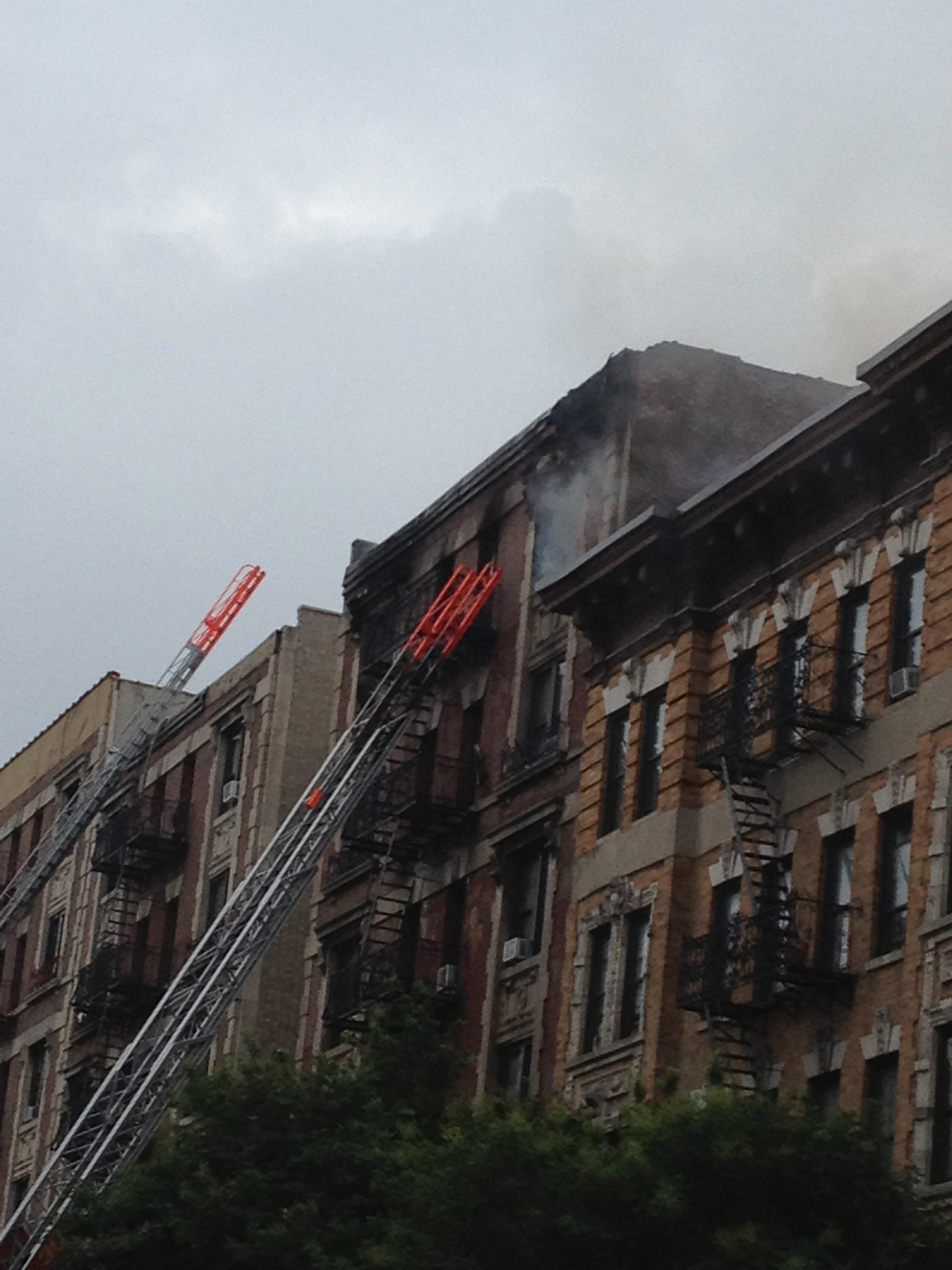 Here are a few photos from the fifth alarm fire on West 139th St. in Manhattan yesterday. The fire broke out on the sixth floor of an apartment house and quickly spread to the cockloft. I grabbed my phone and jumped on the subway in time to get a few photos, although the job was mostly done and the engines started taking up shortly after I got there.